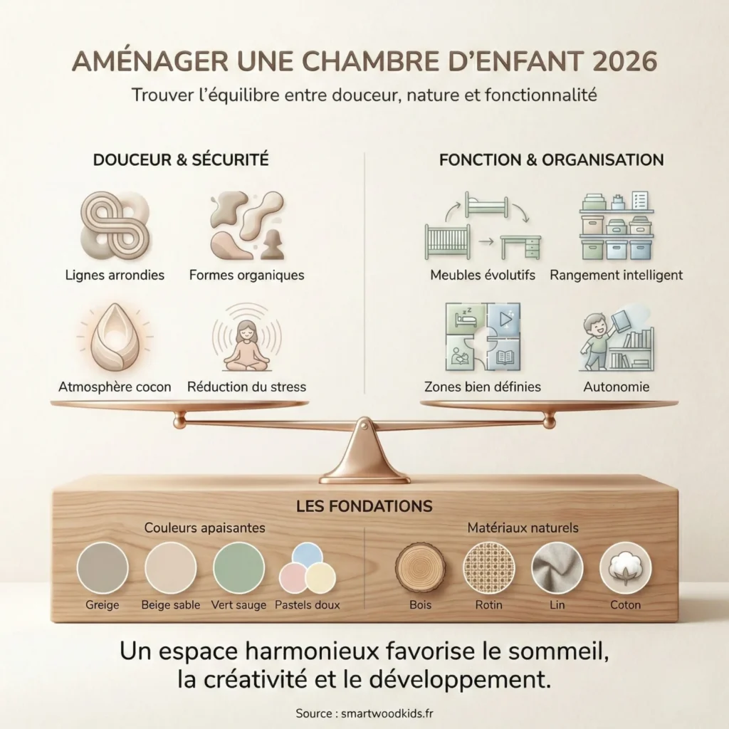 Aménager une chambre pour les tout-petits, c’est une étape très importante. Ce n’est pas seulement une question d’esthétique, c’est vraiment pour que votre bout de chou s’y sente bien, qu’il grandisse sereinement. Les tendances 2026 vont dans le même sens : on veut des espaces qui rassurent, qui apaisent, mais qui stimulent aussi la petite tête. L’idée, c’est de créer une bulle qui évolue avec l’enfant, avec des formes douces, des matières naturelles, et une palette de couleurs qui évoque la tranquillité. Beaucoup de parents et de professionnels s’accordent sur un point : c’est comme ça qu’on aide un enfant à s’épanouir, à bien dormir, et à laisser son imagination vagabonder.