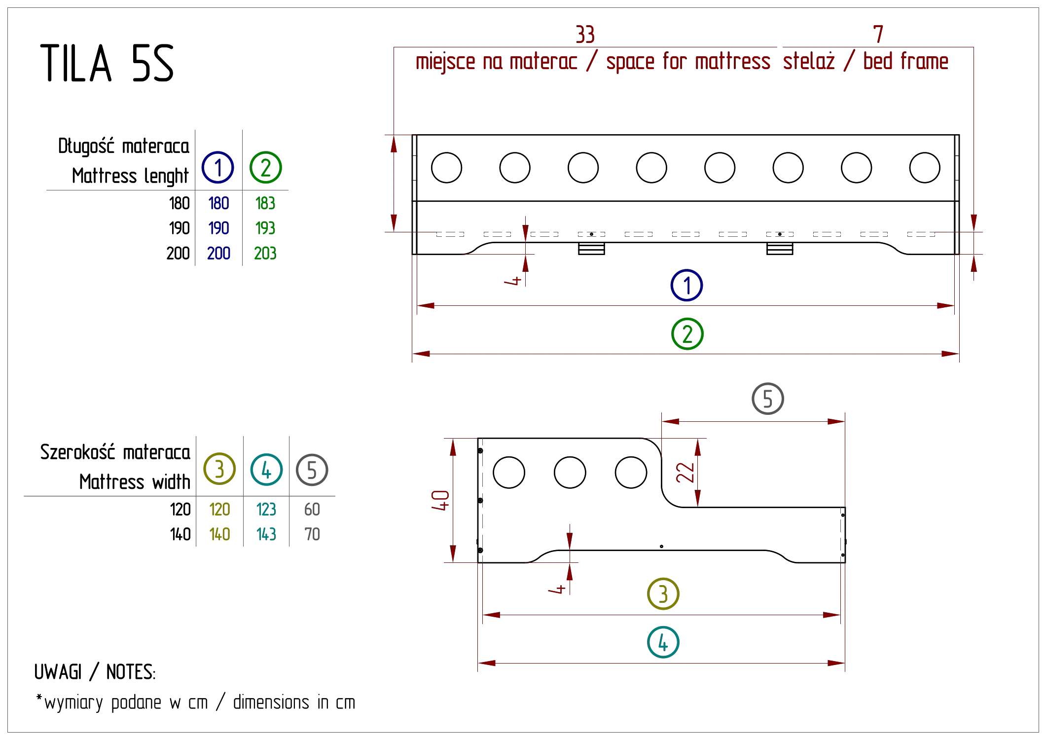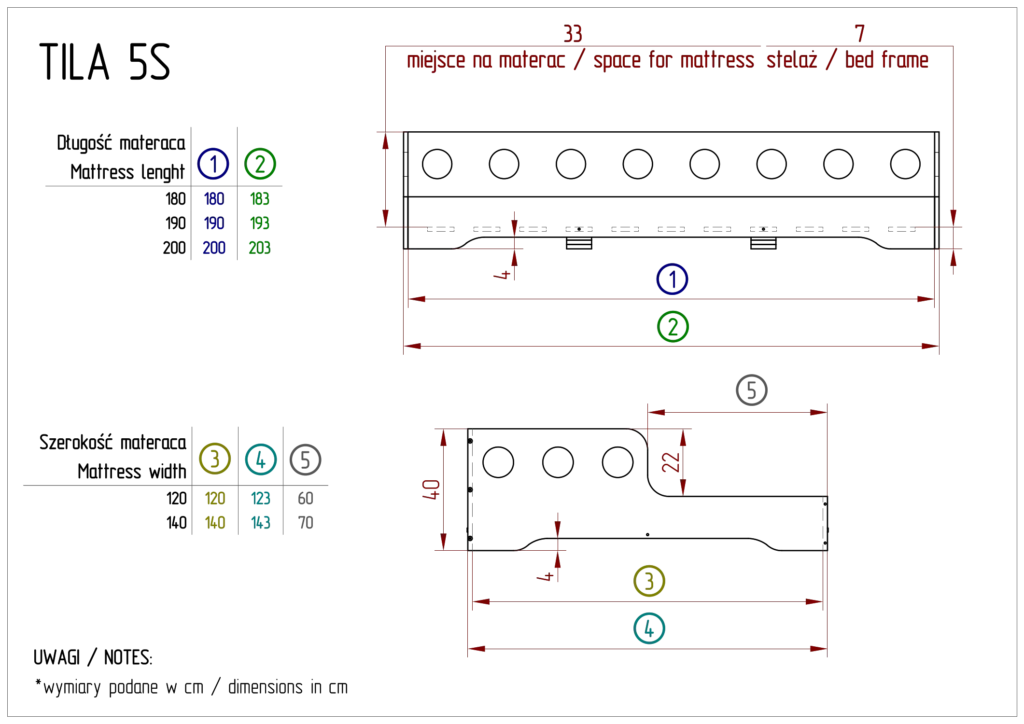 Les petites dimensions sont équipées d’un sommier à lattes courbées, tandis que les tailles à partir de 120 cm de largeur disposent d’un sommier à lattes droites.