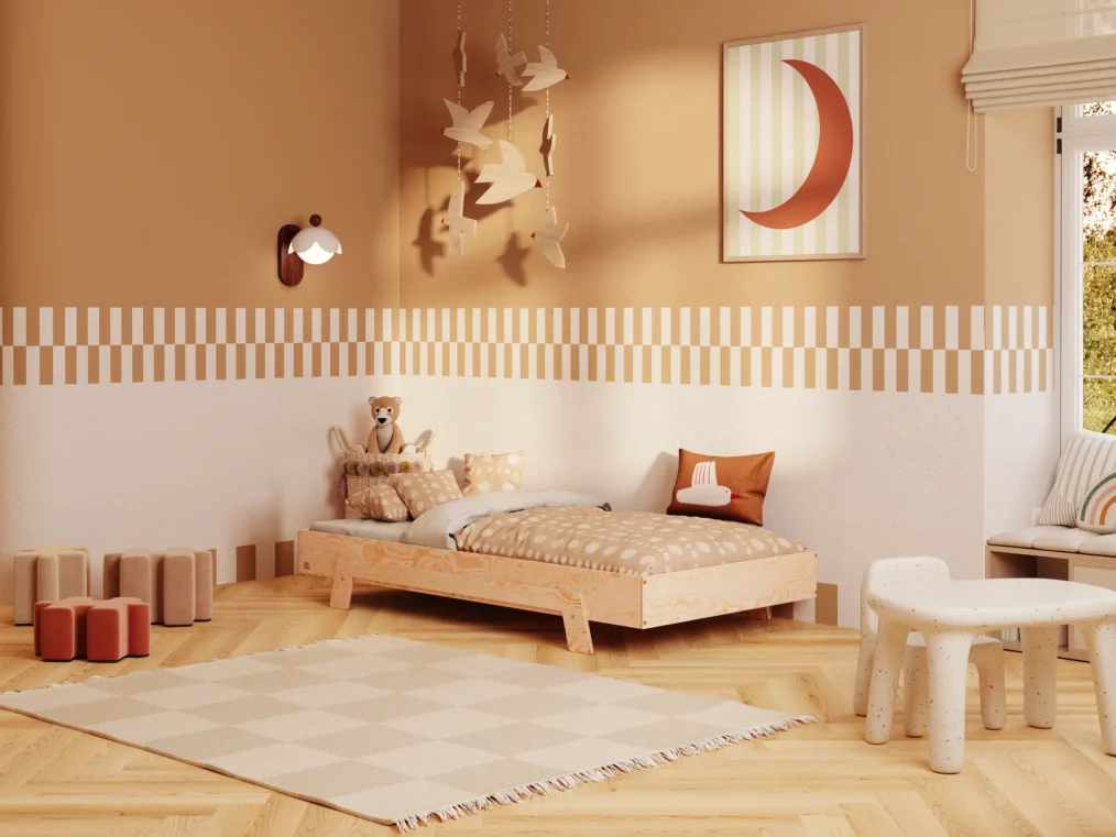 La couleur, c’est aussi la qualité et la sécurité. Chaque lit est peint à la main, en plusieurs couches, avec une peinture écologique et certifiée. Le temps de séchage garantit une finition durable, sans odeur, prête à être utilisée dès la réception. Ça vaut la peine d’attendre ce résultat !